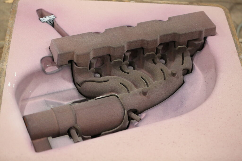 Die Sandformen werden ohne umweltbelastende Zusatzstoffe hergestellt. Die Stabilität wird ausschliesslich über feuchten Sand und der Presswirkung der Formmaschine erreicht.